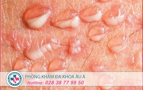 Khi bị mụn rộp sinh dục ngoài triệu chứng ngứa môi nhỏ vùng kín, ngứa môi lớn vùng kín thì người bệnh sẽ thấy xuất hiện các mụn nước mọc riêng lẻ rồi dần tập trung thành từng cụm ở vùng kín. Vài ngày sau chúng sẽ vỡ ra và lở loét chảy dịch rồi đóng vảy.
